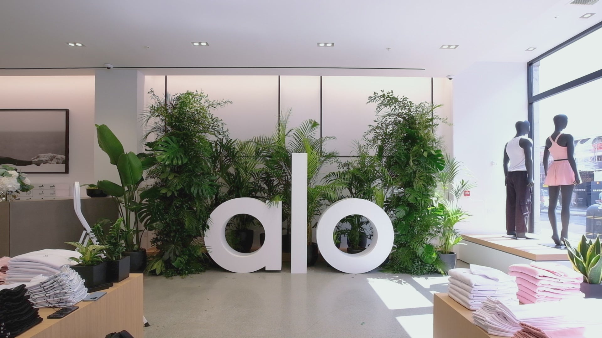 We were delighted to partner with Alo for the grand opening of their latest store on Regents Street London, creating a lush, welcoming environment that perfectly complemented Alo's ethos and the sleek, modern aesthetic of their new location. The installation featured a variety of plants and floral arrangements, strategically placed to enhance the overall ambience and provide a sense of tropical elegance.